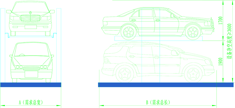两层简易升降式(举升机)停车设备是通过液压缸带动链条驱动车台板升降来实现存取车。采用按钮、遥控开关等多种方式控制,多适用于私人住宅、住宅小区、企事业单位等。